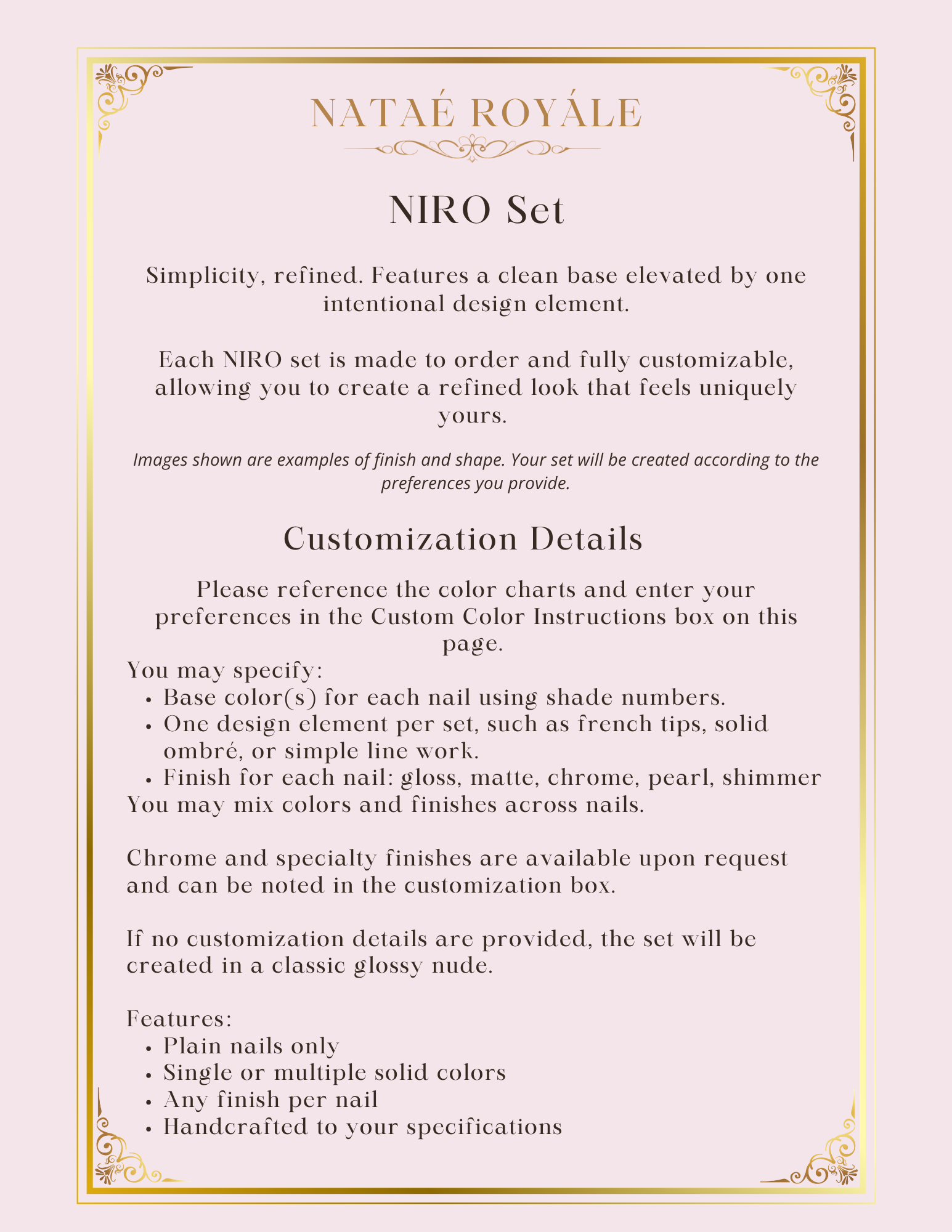 The NIRO Set includes one refined design element only. For more intricate or multi-element designs, please select a higher-tier set.